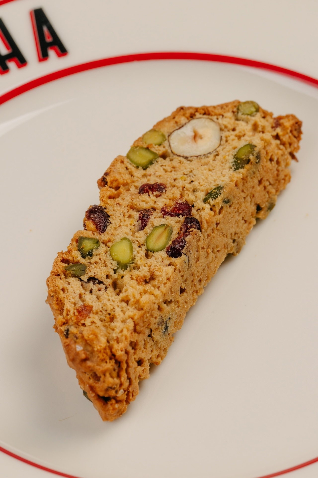 Курага, Орехи Фисташки, Орех миндаль, Приправы, Сахар тростниковый, Яйцо куриное , Масло сливочное более,Клюква сушеная, Мука пшеничная в/с, Соль пищевая, Апельсины , Ваниль стручковая ,Разрыхлитель д/теста кухня