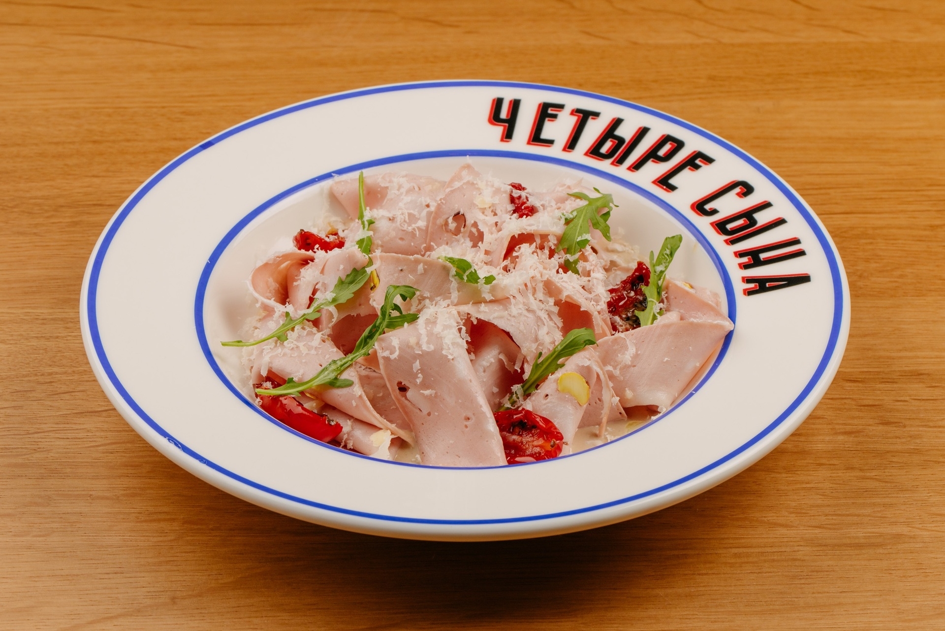 Сахарная пудра, Сливки 33 %,анчоус , Томаты черри, Масло оливковое, Тунец консерв в собств.соку, Сыр Пармеза, Розмарин , Тимьян , Соль морская, Соль пищевая, Чеснок свеж, Руккола, Каперсы мелкие, Майонез, Мортаделла с фисташкой, Соус Ворчестер , вино белое