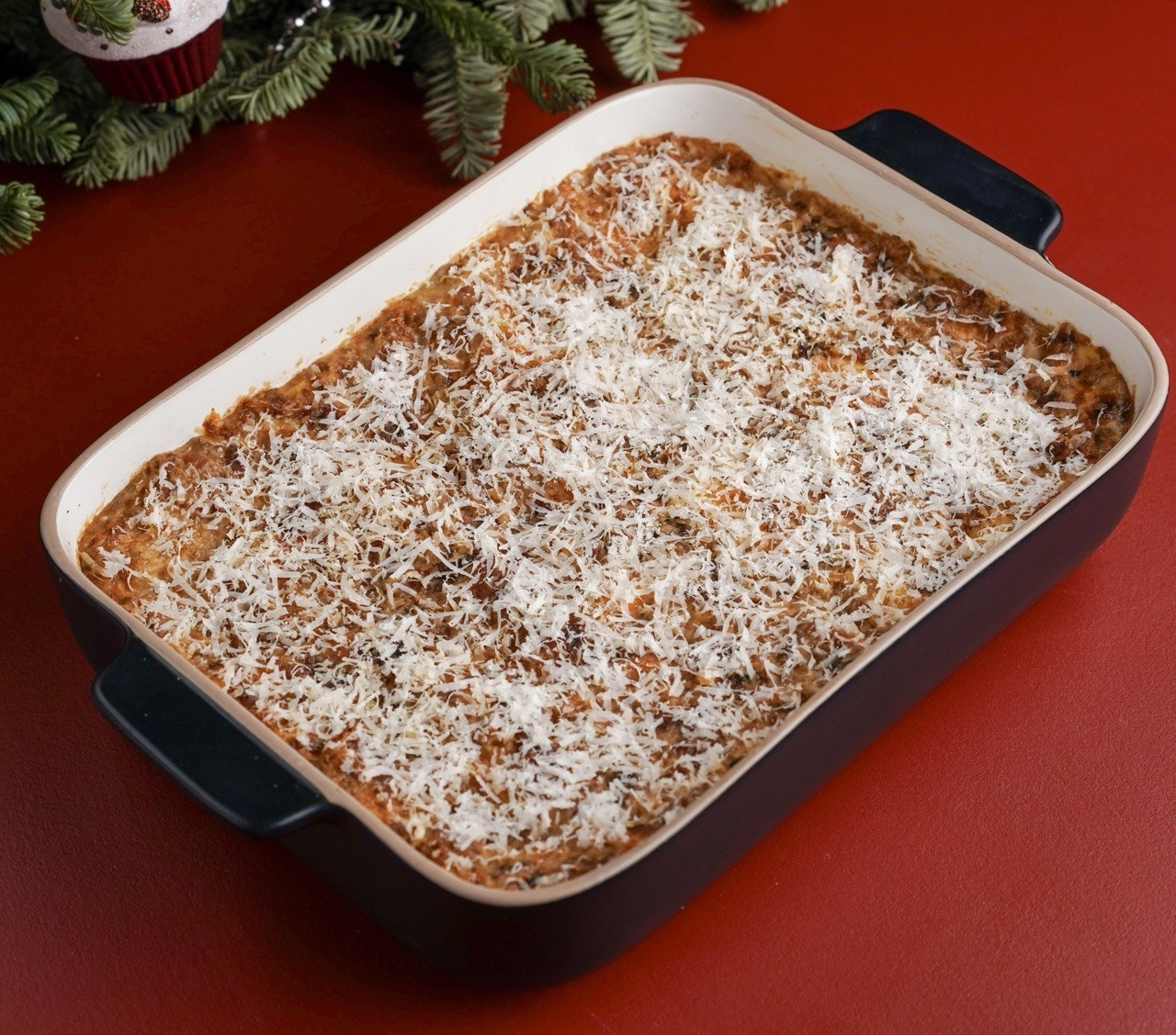 Ароматная, сытная и румяная. Много соуса, много сыра и незабываемые эмоции. Мясной фарш, тесто, соус бешамель, и сыр пармезан.