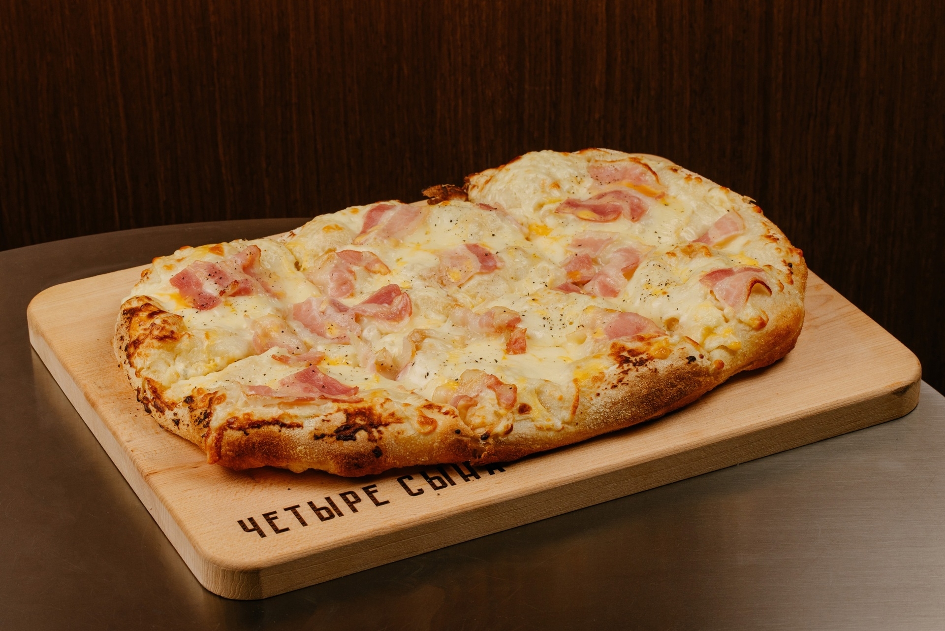 Курица, Сливки 33 %, Дрожжи живые, Сыр Моцарелла, Смесь для пиццы римская , Приправы специи сухие, Масло оливковое, Лук репчатый, Мука кукурузная, Масло сливочное, Сыр Пармезан, Бекон с/к, Молоко 3,2 % , Мука пшеничная в/с, Морковь свеж, Соль пищевая, Мука Семола, Сахар песок, укроп, вино белое